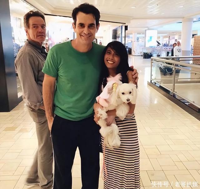 明星双重抢镜 粉丝与《摩登家庭》明星合影时,《绝命毒师》主角布莱恩·科兰斯顿意外抢镜。养狗人士调侃:"显然狗不是他们节目的粉丝"